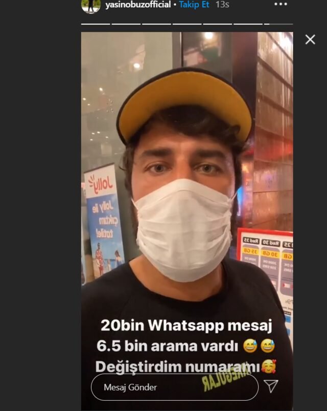 Yasin Obuz’un iddiasına göre telefon numarası ifşa oldu. Obuz ise gelen arama ve mesajlarla çıldırıp numarasını değiştirdi. Obuz açıklamasında “Numaram dağıtılmış o yüzden 7-8 saattir yoktum. Şimdi numaramı değiştirdim. Oh be” dedi.