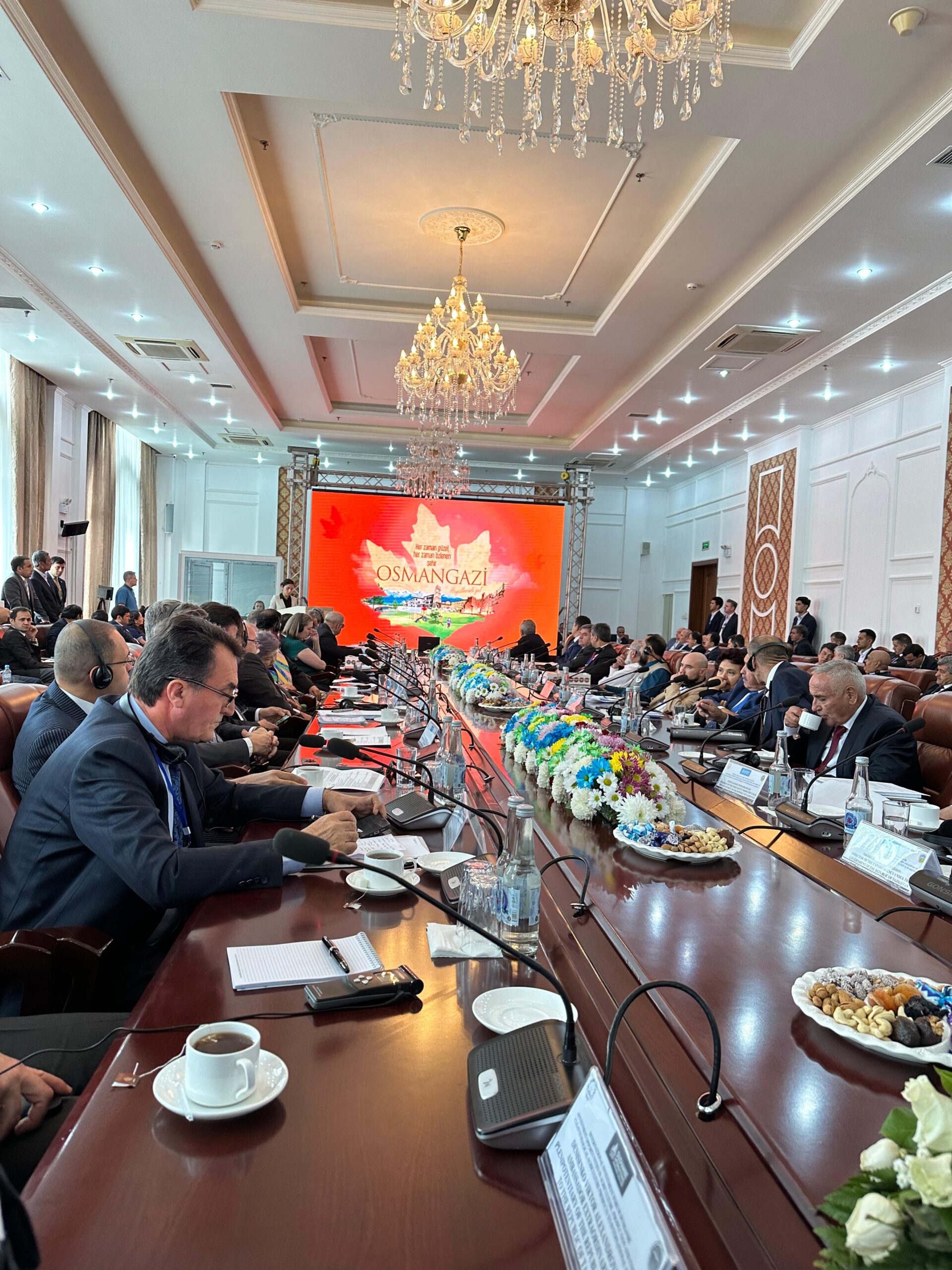 Tacikistan’da düzenlenen Uluslararası Duşanbe Yatırım Formu 2023’e katılan Osmangazi Belediye Başkanı Mustafa Dündar, sanayi ve tarımla kalkınan Bursa’yı tanıtma görevini üstlendi. Tacikistan’ın Ankara Büyükelçiliği tarafından davet edilen Başkan Dündar, farklı ülkelerden devlet yetkilileri ve iş insanlarıyla temaslarda bulundu. Törende bir de konuşma yapan Dündar, Bursa’nın ekonomik verilerini ve ihracatını anlattı.