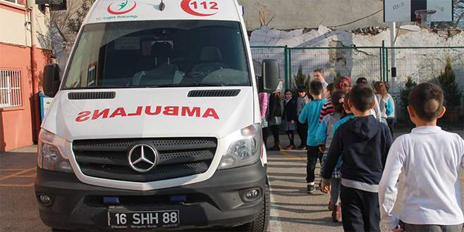 Bursa'da 112 personeli tarafından öğrencilere ambulanslarda eğitim veriliyor.