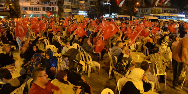 Bursa’da sandıkların yüzde 99’unun açılmasının ardından vatandaşlar 15 Temmuz Demokrasi Meydanına akın etti.