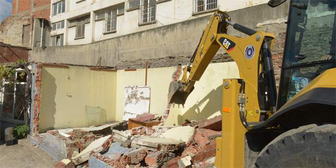 Bursa Büyükşehir Belediyesi tarafından Gemlik’e kazandırılacak Ahmet Dural Kent Meydanı için kamulaştırılan binaların yıkımı devam