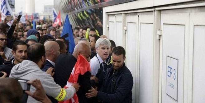 Fransız ulusal havayolu şirketi Air France'da alınması beklenen toplu işten çıkarma kararına tepki gösteren çalışanlar