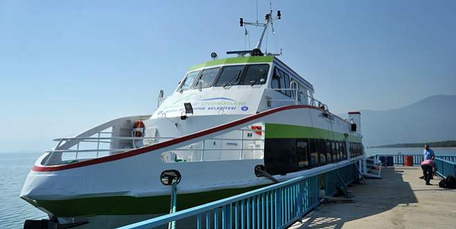 İznik Gölü'nde, Orhangazi ve İznik ilçeleri arasında yolcu taşımacılığı yapacak olan 'Akşemsettin Gemisi' ilk seferini