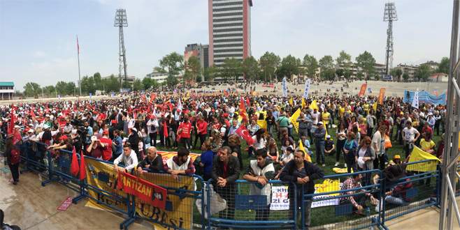 Bursa'da 1 Mayıs İşçi Bayramı kutlamaları, yıkılan Bursa Atatürk Stadyumu yerine yapılan yeni Altıparmak Meydanı'nda