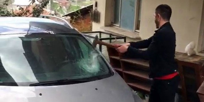Arkadaşına kızdı, aracını çekiçle parçaladı