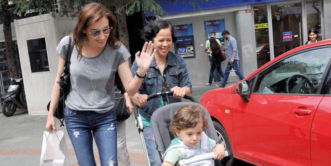 Funda Arar önceki gün oğlu Aras ve bakıcısıyla güneşli İstanbul sokaklarında görüntülendi.