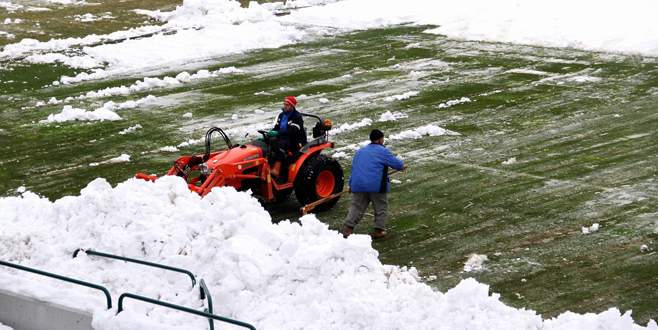 Atatürk Stadı'nın beyaza bürünmesi kafalarda soru işareti bıraktı.- 19 Şubat 2015 Perşembe 21:31