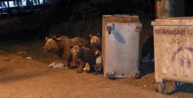 Uludağ ormanlarında yaşayan ayılar, yiyecek bulmakta güçlük çekip aç kalınca günübirlikçilerin ve et-mangal restoranlarının atıklarının