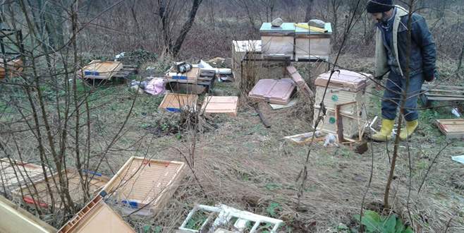 İnegöl'de, kış uykusundan uyanır uyanmaz köye inen ayı, arı kovanlarını paramparça etti. 2 milyona yakın