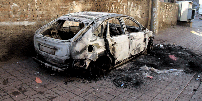 Diyarbakır’da polis aracına el yapımı patlayıcı atıldı