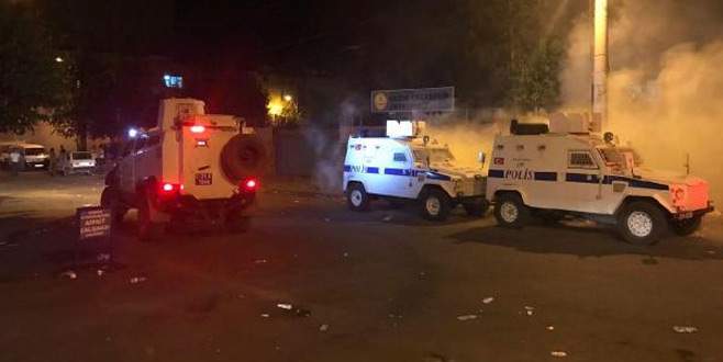 Diyarbakır’ın Bağlar ilçesinde yüzleri maskeli bir grup, polis ekiplerine ses bombası ve taşlarla saldırdı.
