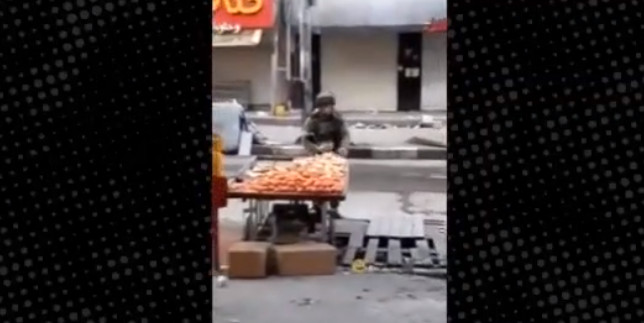 Batı Şeria'da, İsrailli bir komutan bir çatışmadan sonra pazardaki tezgahtan elma çaldığı anlara ait görüntünün