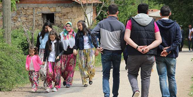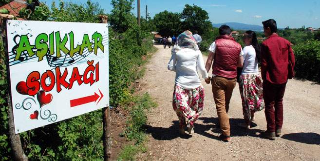 Çanakkale'nin Muratlar köyünde düzenlenen yemekte bir araya gelen bekar gençler, "Aşıklar Sokağı" olarak bilinen bölgede