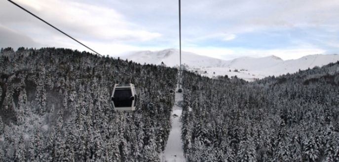 Bursa ile Uludağ arasında ulaşımı sağlayan teleferik seferleri saatte 100 kilometre hızla esen lodos sebebiyle