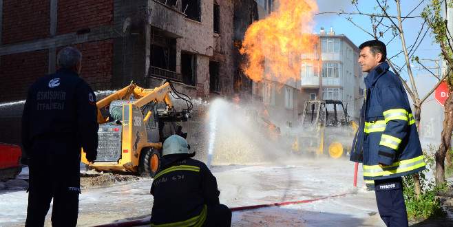 Mudanya'da inşaatın hafriyat çalışmaları sırasında, iş makinesi doğalgaz borusunun patlamasına neden oldu. Patlama nedeniyle çökme