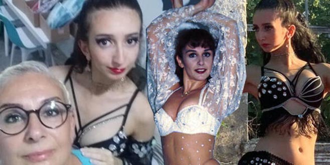 Burçin Orhon, Kuşadası'nın Caferli Köyü'nde düzenlenen bir festival kapsamında dans gösterisi sunan kızı Zeynep Uygur'un