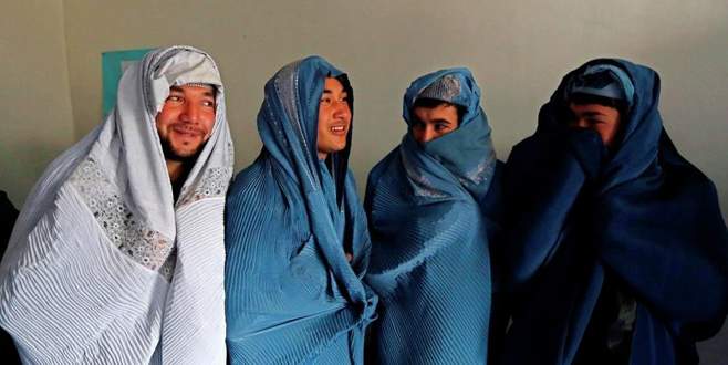 Afgan erkekler burka giydi