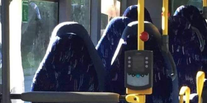 Otobüs koltuklarını burka sandılar