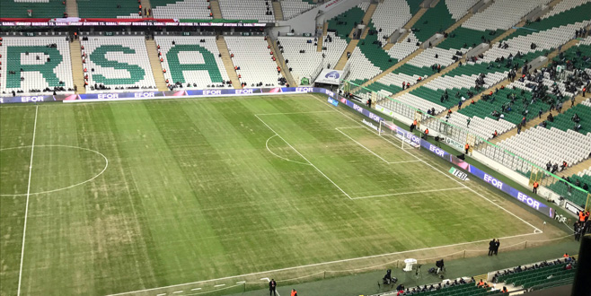 Bursa Büyükşehir Belediye Stadı'nın zemini Beşiktaş karşılaşmasında görenleri şaşırttı.- 03 Şubat 2018 Cumartesi 17:17