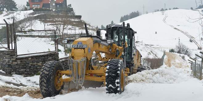 Bursa Büyükşehir Belediyesi, köy yollarında 40 ekip 120 personelle karla mücadele çalışmalarını sürdürüyor.