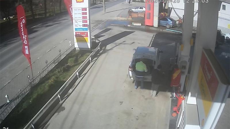 Bursa'da bir benzin istasyonunda otomatik yıkama cihazında temizlenen araç, sürücüsü el frenini çekmeyince ana yola