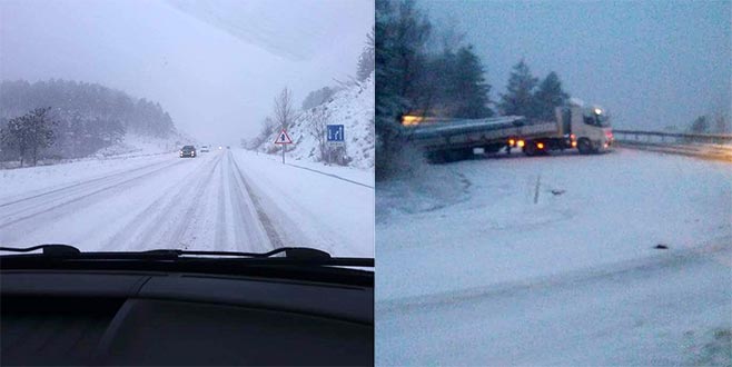 Bursa’nın dağ ilçelerinde kar yağışı trafiği olumsuz etkiliyor.- 23 Aralık 2017 Cumartesi 17:36