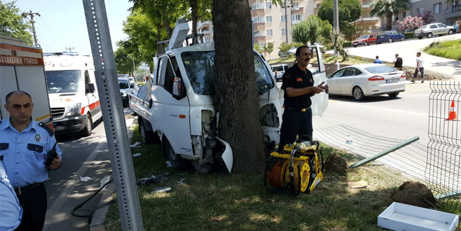 Bursa'nın Mudanya ilçesinde ağaca çarpan kamyonette 3 kişi yaralandı.- 22 Haziran 2016 Çarşamba 17:51