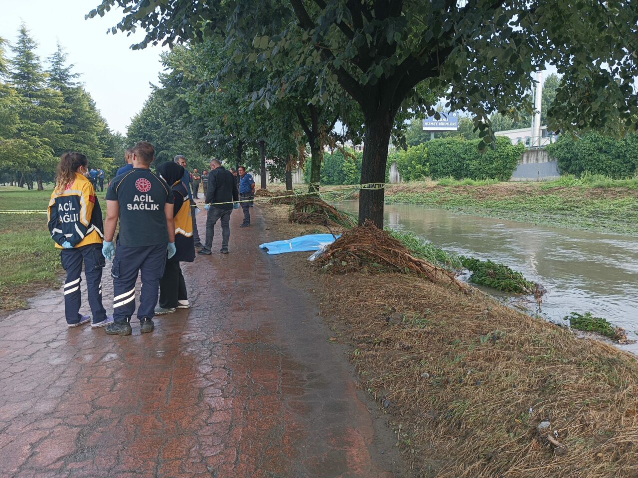 Bursa'da 4 Temmuz'da etkili olan sağanak ve dolu sonrası debisi yükselen Nilüfer Çayı'nda bulunan erkek
