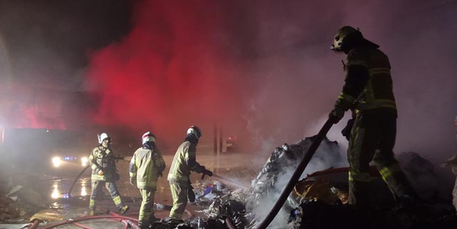 Bursa'nın Osmangazi ilçesinde atık kağıt deposunda çıkan yangın hasara neden oldu.- 21 Aralık 2019 Cumartesi 11:01