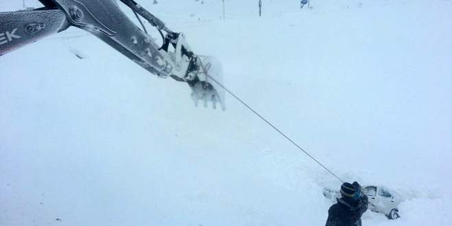 Kış turizminin önemli merkezlerinden Uludağ’da direksiyon hakimiyetini kaybeden sürücü dere yatağına uçtu. Kara gömülen otomobilden