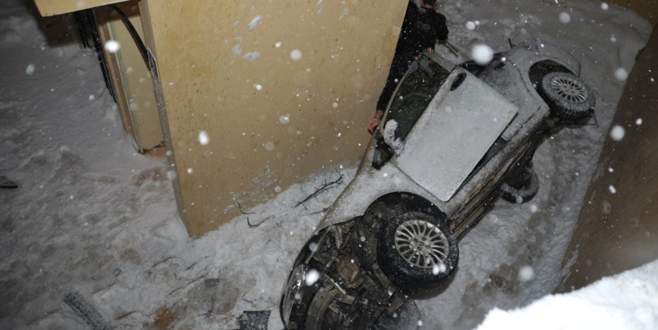 Bursa’nın Orhangazi ilçesinde buzlu yoldan yokuş aşağı inmek isteyen bir otomobil kontrolden çıkarak, TOKİ Cami
