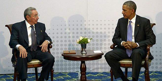 Küba Devlet Başkanı Castro ile bir araya gelen Obama, “Zaman içerisinde sayfaları çevirmek ve iki