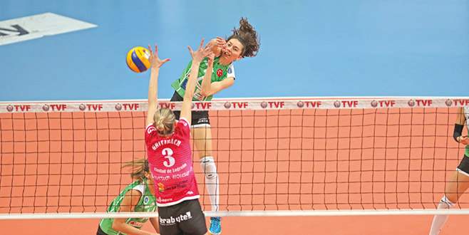Cengiz Göllü Voleybol Salonu'nda yaklaşık 2 bin taraftarının desteğini arkasına alan Bursaspor, play-off için çekiştiği