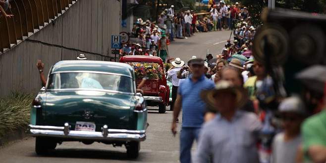 Kolombiya'da geleneksel olarak düzenlenen Çiçek Festivali'nde yaklaşık 300 antika aracın katıldığı geçiş töreni büyük ilgi