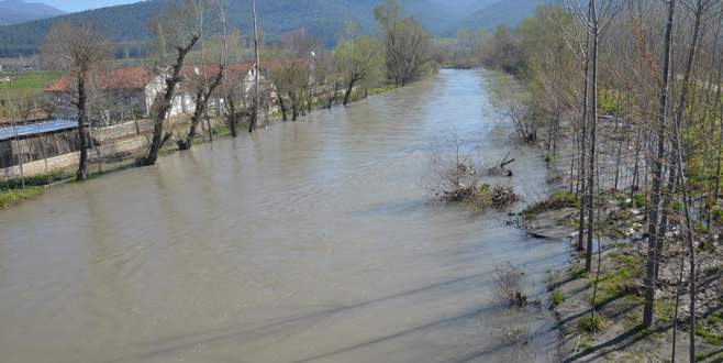 Bursa’da yoğun kar ve yağışlar sebebiyle dağ yöresindeki tarım arazilerini besleyen Kocasu Çayı taştı.