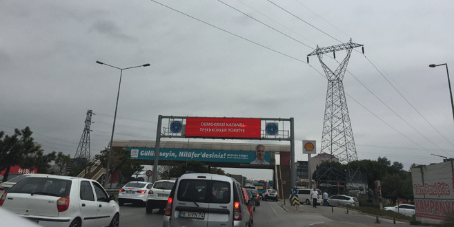 Bursa’da yollara ‘Demokrasi kazandı’ tabelaları asıldı