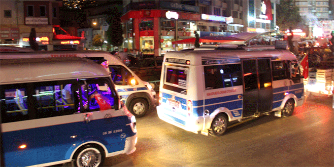 Yüzlerce minibüsçü Demokrasi Meydanı’na akın etti