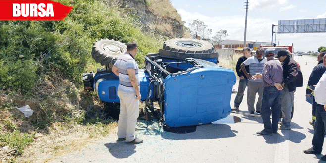 Karacabey'de İlyas Yıldız (70) yönetimindeki traktör, ilçe terminali yakınlarında sürücüsünün direksiyon hakimiyetini kaybetmesi sonucu devrildi.