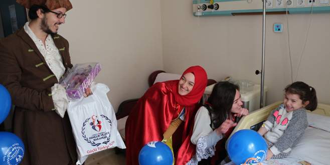 Bursa'da faaliyet gösteren Nilüfer Gençlik Merkezi Gönüllüleri, Dörtçelik Çocuk Hastanesinde tedavi gören minikleri ziyaret etti.