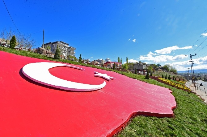 Dulkadiroğlu Belediyesi, Aslanbey Mahallesi Şeyh Şamil Caddesi üzerine 140 metrekarelik Türk Bayrağı çalışmasını tamamladı.