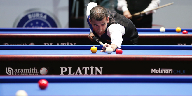 Bursa'da düzenlenen 3 Bant Bilardo Dünya Kupası'nda son 16 turu maçları başladı.
