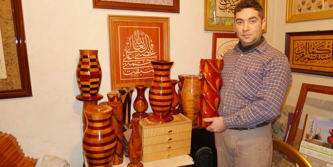 Bursa’da marangozluk yapan Abdullah Furat, ebru ile başladığı sanat hayatını, ahşabı da değişik formlara sokarak