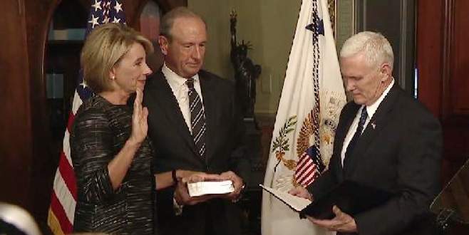 ABD Başkanı Donald Trump'ın Eğitim Bakanı adayı Betsy DeVos, Amerikan Senatosu'ndan onay aldıktan sonra yemin