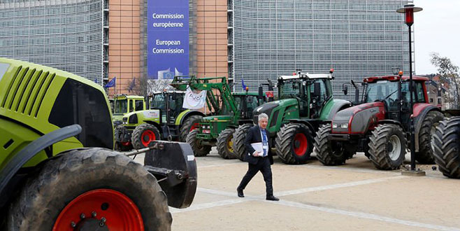 Belçikalı çiftçiler, Avrupa Birliği'nin (AB) tarım ve hayvancılık politikalarını protesto etti.