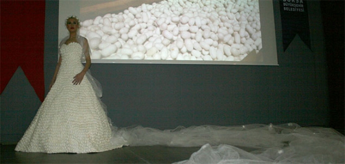 Bursa’da 23 yaşındaki gelinlik tasarımcısı Ece Kaytan tarafından 2015 adet ipek böceği kozasından yapılan 16