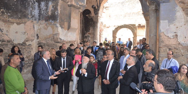 Fener Rum Patriği Bartholomeos ve beraberinde İstanbul'daki çeşitli Rum okullarından 98 öğretmen ve öğrenci, Mudanya,
