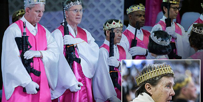 ABD'nin Florida eyaletinde 17 kişinin öldüğü okul saldırısının ardından Pensilvanya eyaletindeki bir kilisede silahlarla ayin düzenlendi.