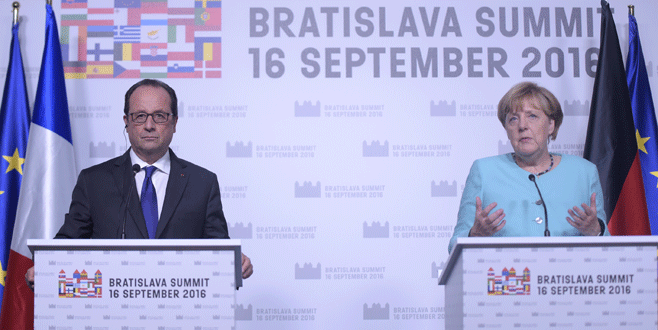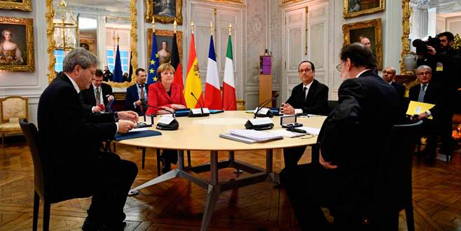 Fransa Cumhurbaşkanı François Hollande, Paris'in prestij mekanlarından Versailles Sarayı'nda, AB'nin öncü ülkelerinin yöneticileri Almanya Başbakanı