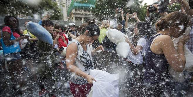 ABD'nin New York kentinde her yıl düzenlenen geleneksel 'yastık savaşı' gerçekleşti.
