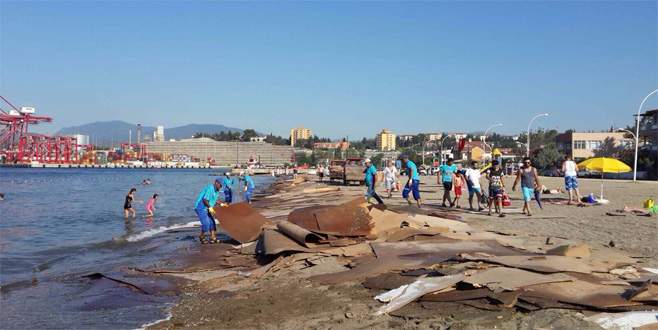 Yüzlerce sunta parçası kıyıya vurdu